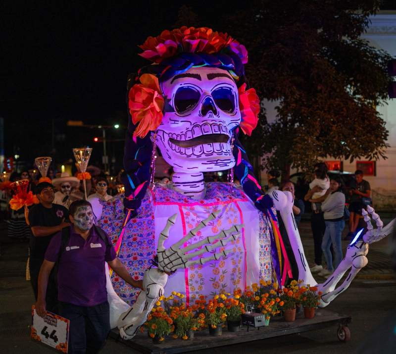 Es la Gran Comparsa del Día de Muertos, “La fiesta más viva de todas”, donde la muerte se disfraza de alegría y el pueblo entero sale a danzarle a la memoria.