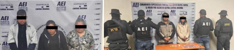 Como resultado de la primera intervención, que se llevó a cabo en un inmueble ubicado sobre el camino de terracería que comunica de Ixtlán de Juárez al mirador Cuachirindoo, detuvieron a tres personas, dos mujeres identificadas como E.O.V. (40 años) y C.O.V. (63 años), así como de un hombre identificado como A.M.M. (24 años).