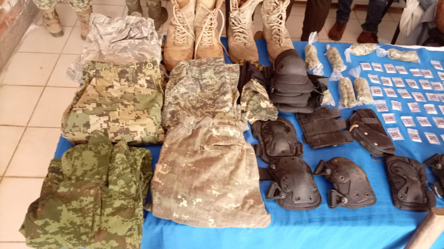 Se aseguraron armas de alto poder, uniformes militares y vehículos con logotipos de fuerzas federales.