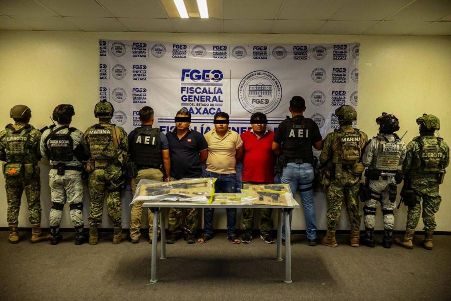 Oaxaca de Juárez, Oax., a 07 de abril de 2026.- Resultado de trabajos de inteligencia criminal, la Fiscalía General del Estado de Oaxaca (FGEO), en coordinación con el Gabinete de Seguridad, logró la detención de tres hombres identificados como J.S.O., A.E.T. y B.O.M., por un multihomicidio registrado en el Istmo de Tehuantepec; además, las investigaciones establecieron que los imputados estarían relacionados con una red de extorsión vinculada a delitos como homicidio, extorsión, robo, entre otros.