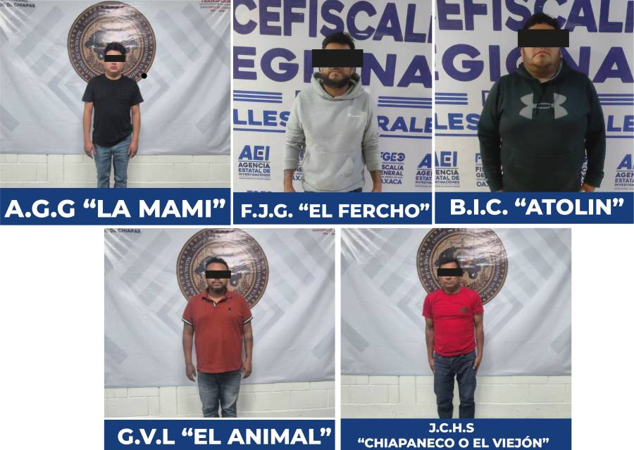 Derivado de estas acciones, B.I.C. y F.J.G. fueron detenidos en territorio oaxaqueño, mientras que, mediante la colaboración institucional con la Fiscalía General del Estado de Chiapas, se logró la captura de J.C.H.S., G.V.L. y A.G.G. en aquella entidad. Todos fueron puestos a disposición de la autoridad ministerial correspondiente, que determinará su situación jurídica conforme a derecho.