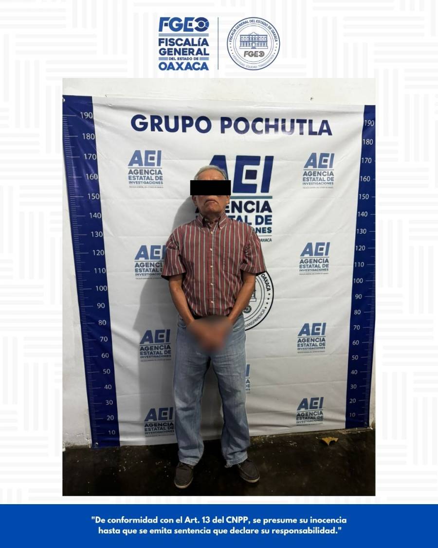 Oaxaca de Juárez, Oax., 24 de abril de 2026.- Como resultado de investigaciones realizadas con perspectiva de infancia, la Fiscalía General del Estado de Oaxaca (FGEO) ejecutó una orden de aprehensión que permitió la detención de un hombre identificado como V.G.H., por su probable responsabilidad en el delito de pederastia, cometido en agravio de una menor de edad, en hechos ocurridos en la región de la Costa.