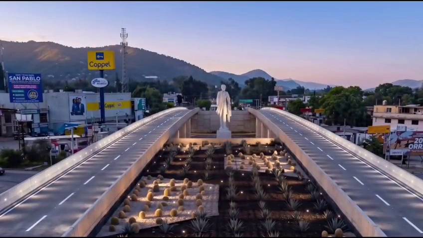 Una obra de gran impacto que transformará el acceso poniente a la ciudad de Oaxaca que contempla 8 carriles (4 elevados y 4 a nivel) y una rotonda donde se elevará el monumento a Benito Juárez, que modernizará la vialidad en la zona.